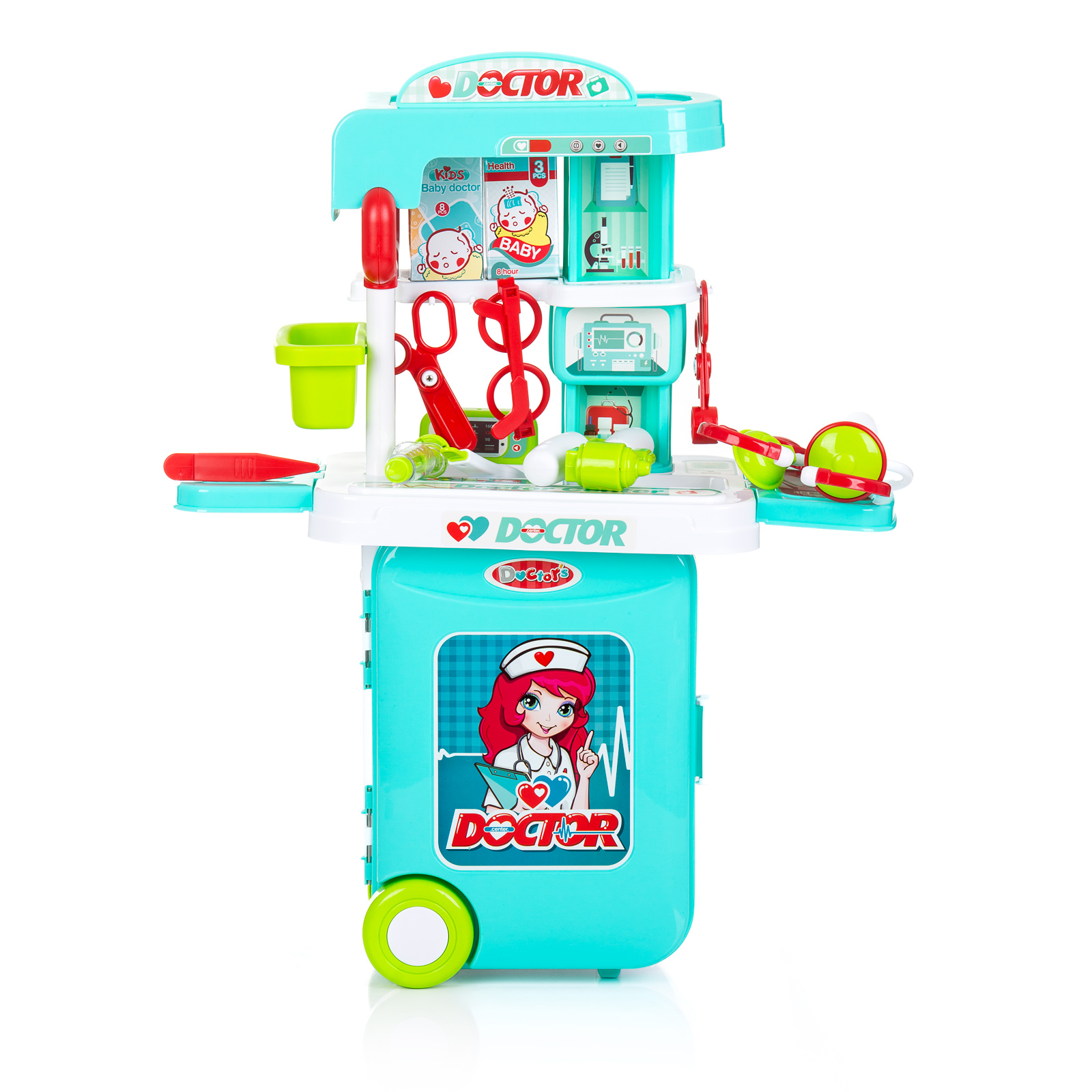 Мултифункционален комплект с различни части – куфарче, масичка с медицински инструменти, очила, слушалки, спринцовки и различни апарати, за да може малкото дете да “преглежда“ своите пациенти;