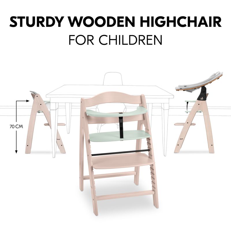 Включена предпазна каишка, 5-точков колан и борд предпазват вашето дете, така че можете да се насладите на спокойно хранене;