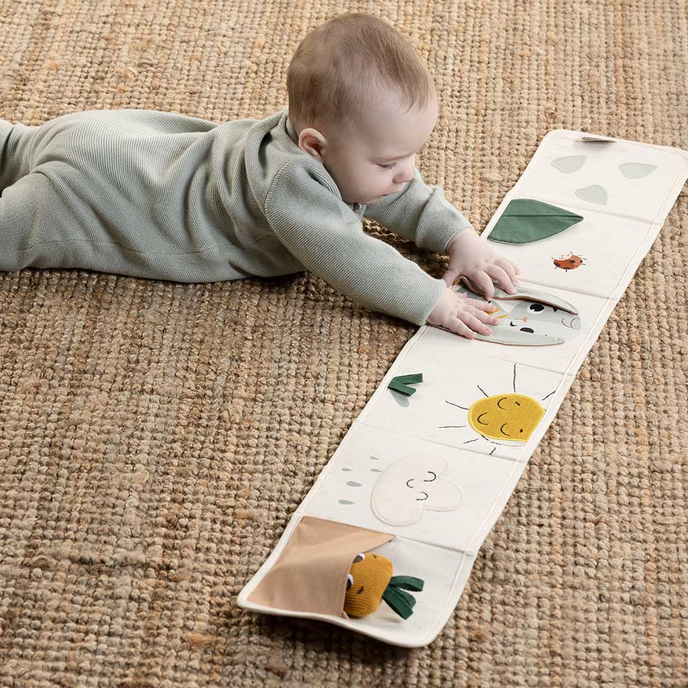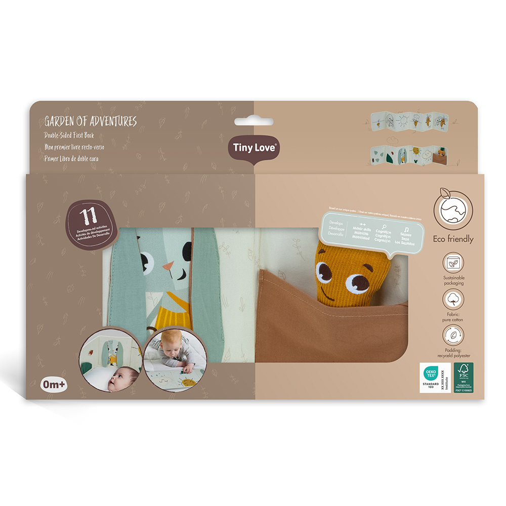 И двете страни на книжката ще ангажират и стимулират бебето в по-ранните и по-късните етапи на развитие, като помагат за удължаване на времето, прекарано по корем;