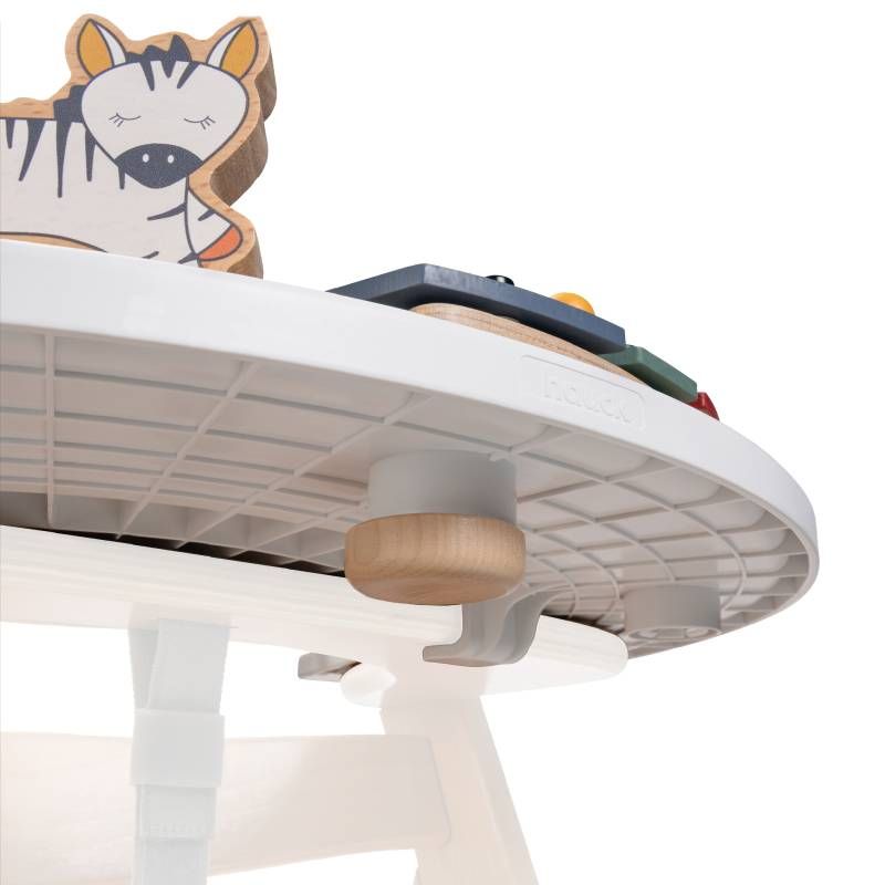 Върху таблата за хранене могат да се комбинират до две дървени играчки за столчета за хранене Hauck (всяка играчка се предлага отделно). ВАЖНО: Таблата за игра се предлага отделно и се различава от таблата за хранене;