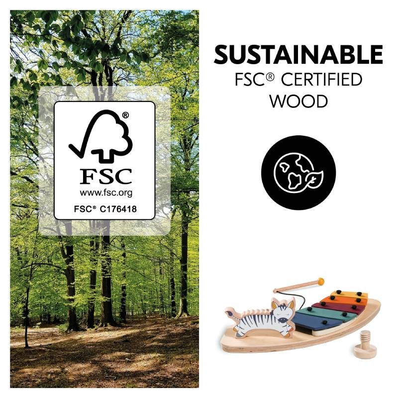 Таблата за игра е изработена от здрава дървесина, която е добита от FSC®-сертифицирани гори, за да се гарантира устойчиво и екологично използване на гората за опазване на околната среда;