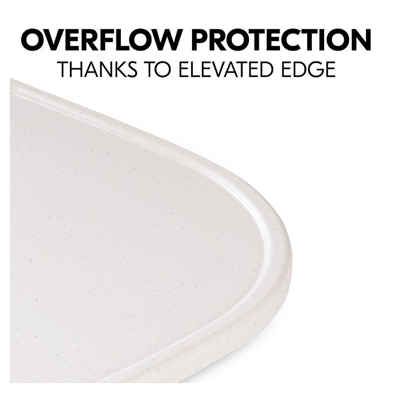 • Предлага място за чинии, чаши и т.н., докато повдигнатият ръб спира храната и играчките от лесно падане;