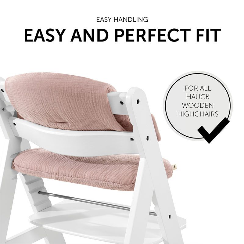 Дишащата памучна подложка предлага приятно мека подплата за дървеното столче за хранене;