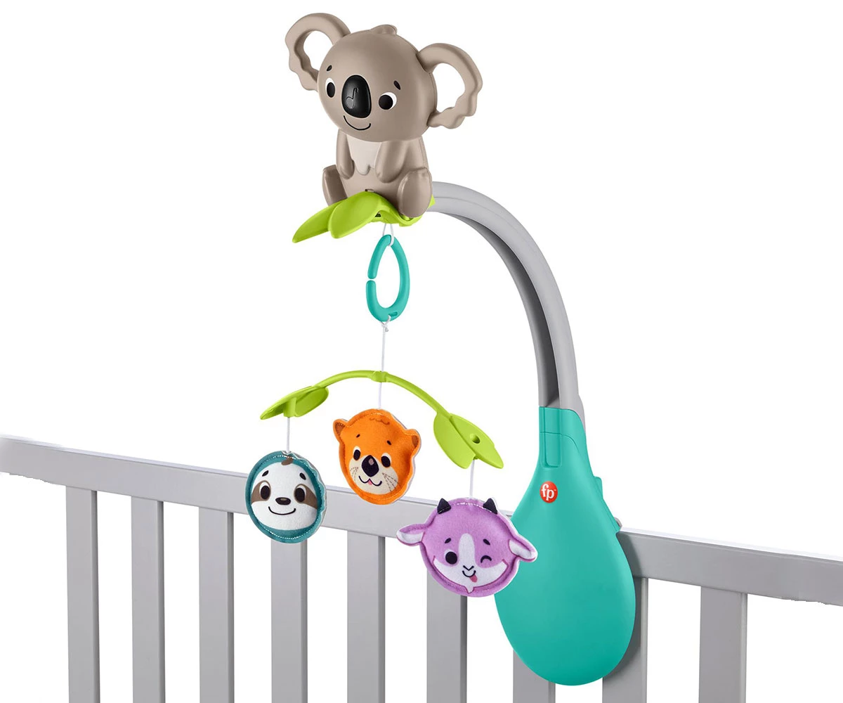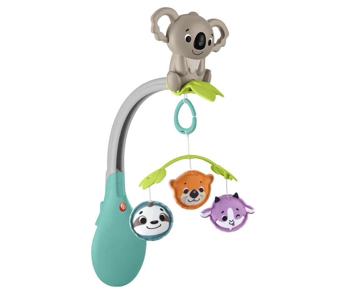 Мобилното устройство включва сладка коала и още 3 висящи играчки: цветни и с висок контраст, за да подпомогнат най-ранното сетивно развитие на вашето бебе;