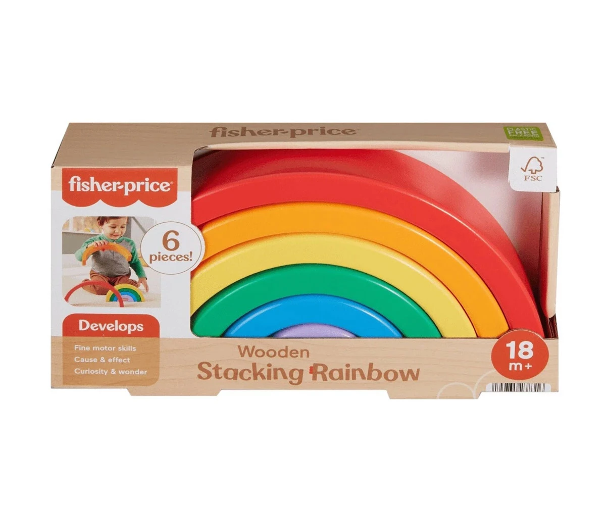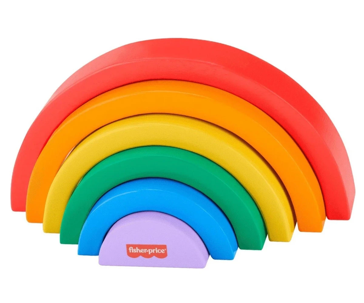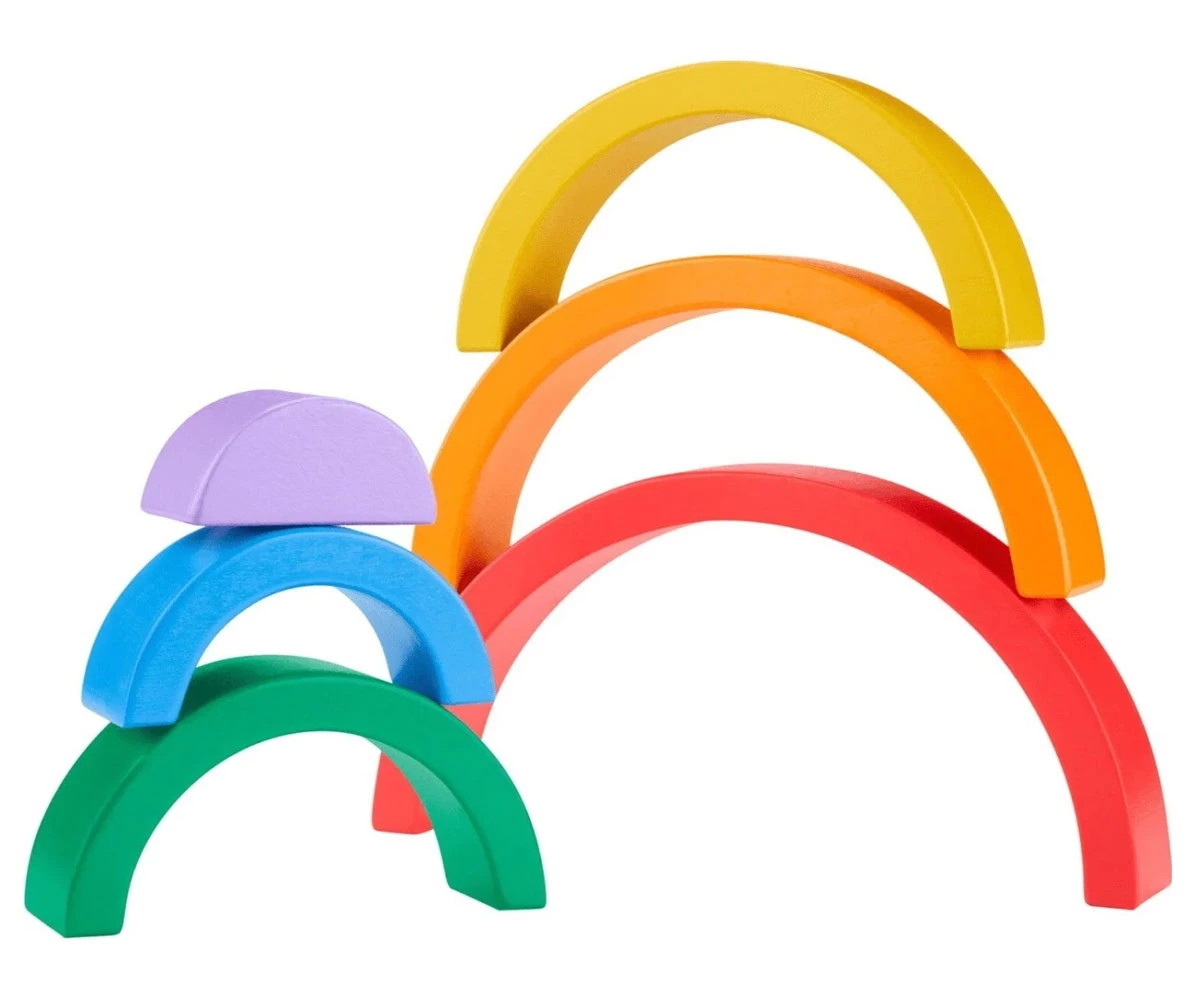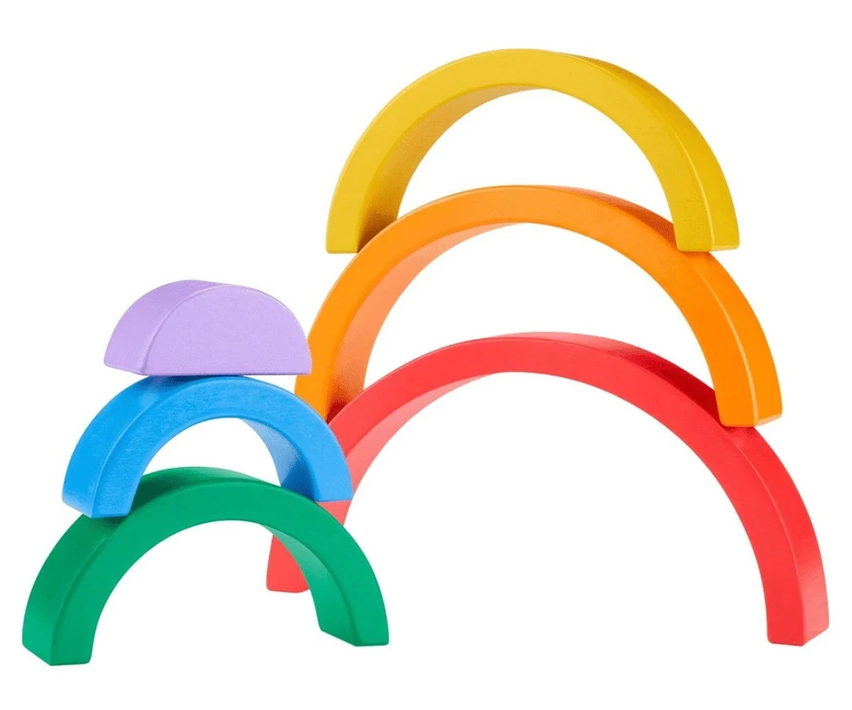 Дървената играчка за подреждане помага за запознаване с цветовете, размерите и как нещата се съчетават;