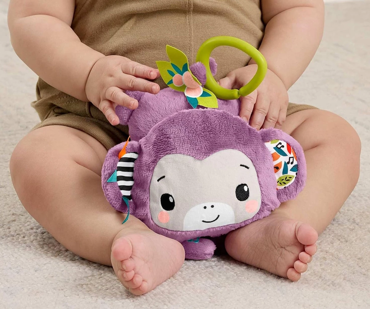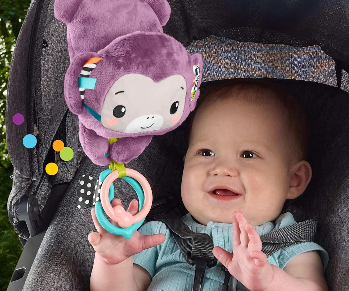 Лесно прикрепете маймунката към сенника на количката, бебешката гимнастика или чантата за пелени за игра по време на пътуване;