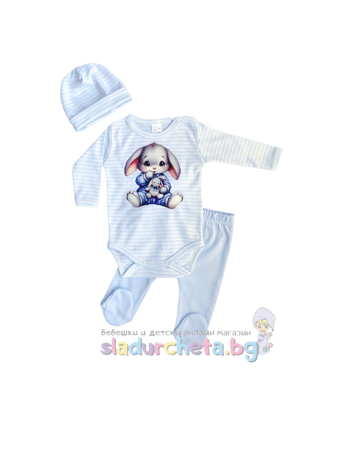 Бебешки и детски магазин "СЛАДУРЧЕТА" и марката "Светли" представят на Вашето внимание бебешки комплект от три части със следните характеристики: