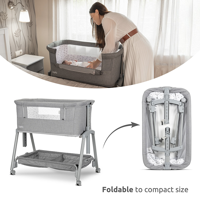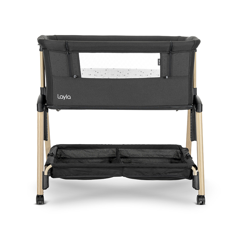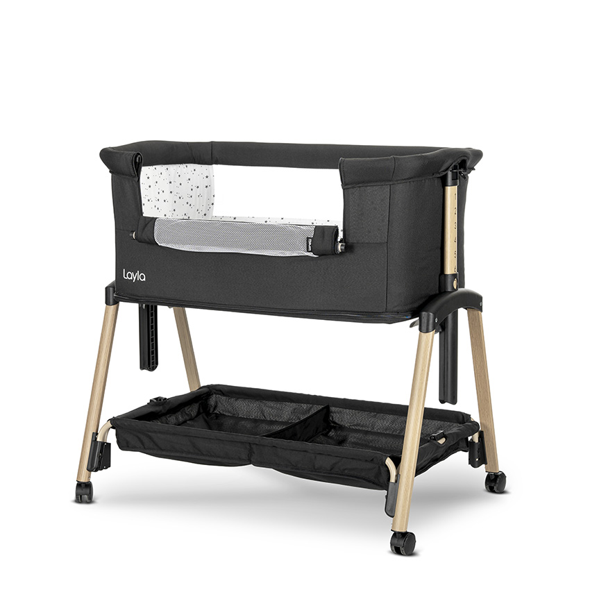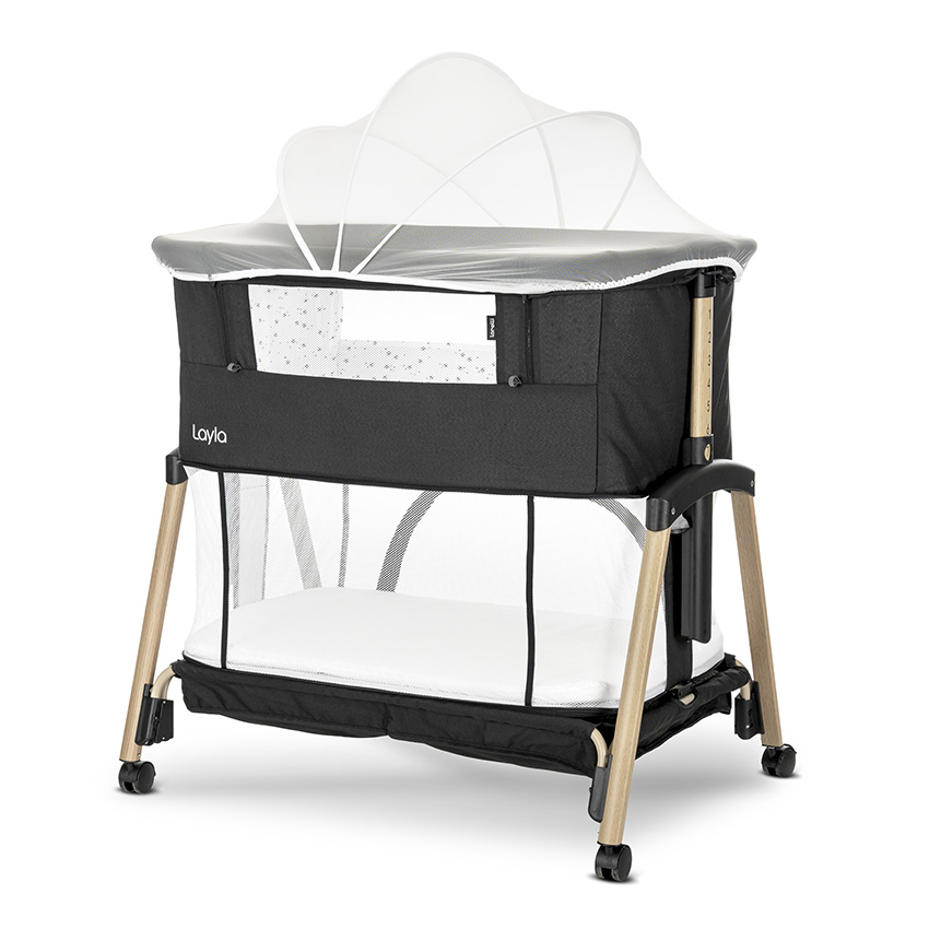 Бебешка мини кошара с падаща преграда 2в1 Lorelli Layla, Black/ wooden effect