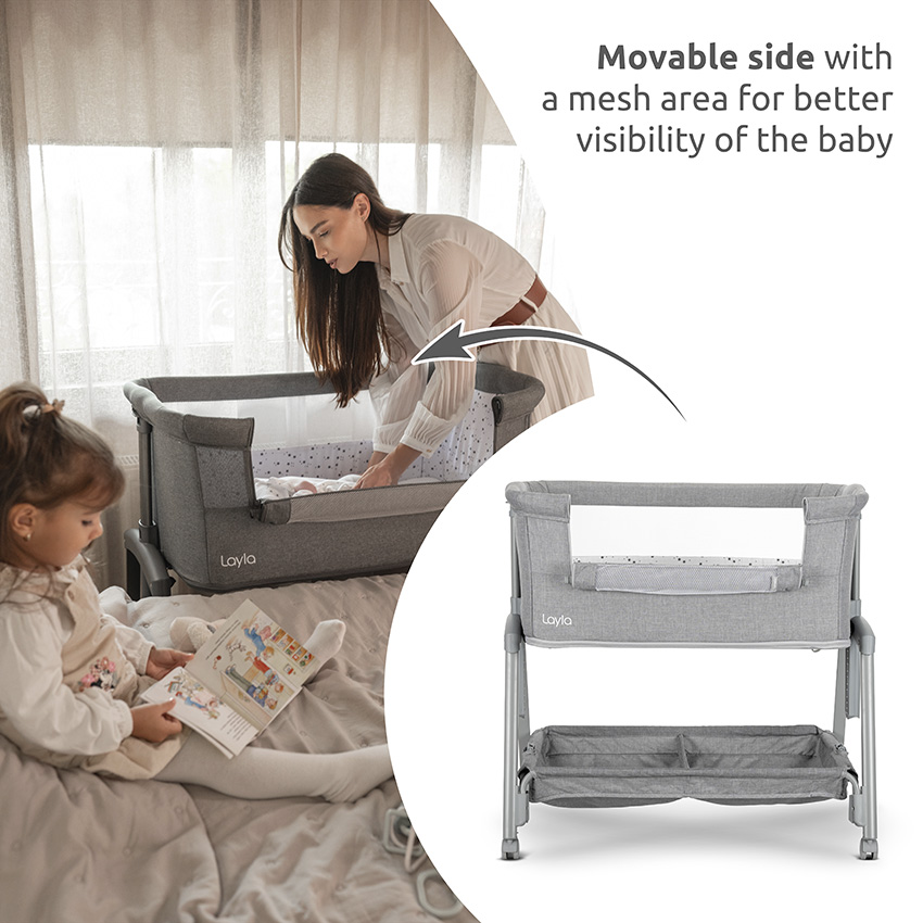 Бебешка мини кошара с падаща преграда 2в1 Lorelli Layla, Black/ wooden effect-gvKU5.jpeg