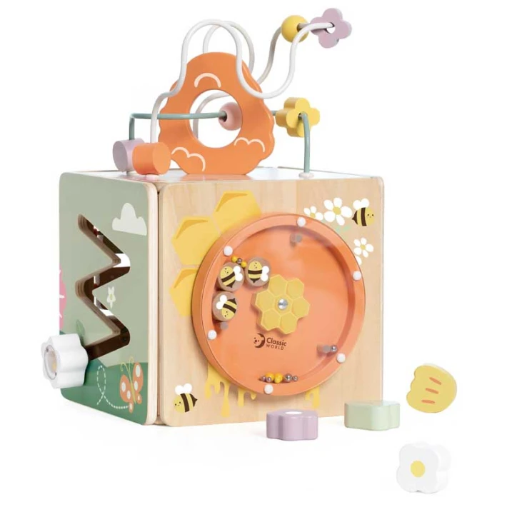Дървен сензорен куб 5 в 1 Classic World, Пчелен кошер