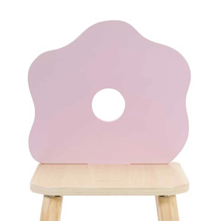 Дървеното столче за деца с облегалка във формата на цвете представлява уютно и стилно допълнение към детската стая;