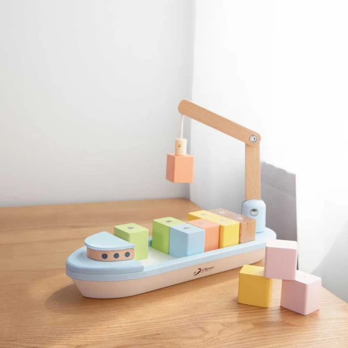 Това е забавно малко корабче, натоварено с 12 цветни магнитни блокчета;
