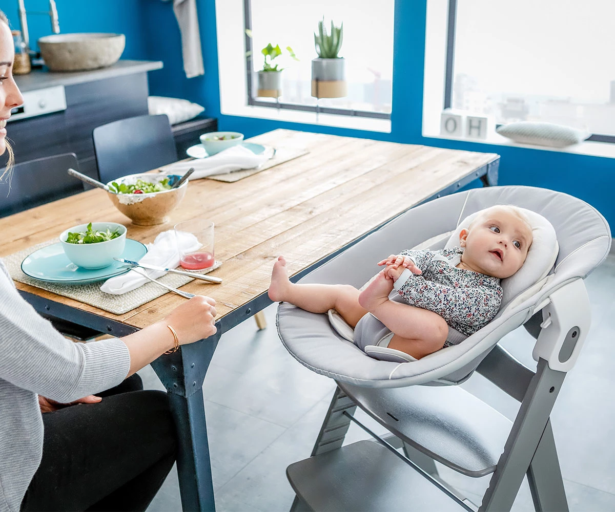 Може да се използва като модул за новородено върху дървеното столче за хранене Alpha+;