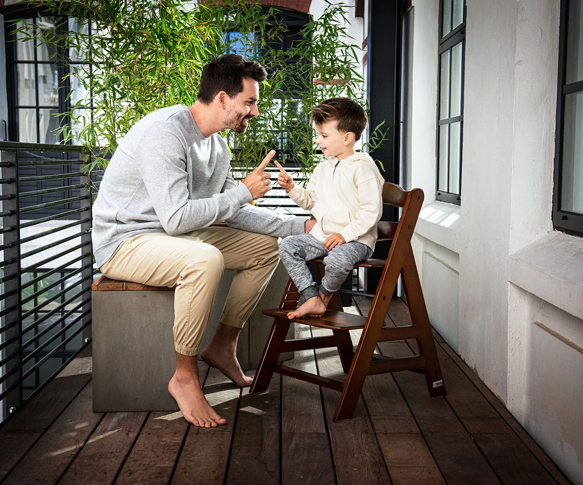 Ако детето се отблъсне от масата, столчето леко се приплъзва назад, вместо да се накланя;