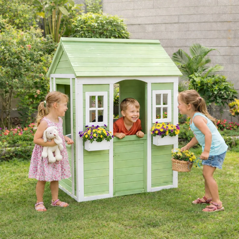 • Къщичката разполага с врата и прозорци с рамки, които допринасят за автентичното усещане за истинска къща;