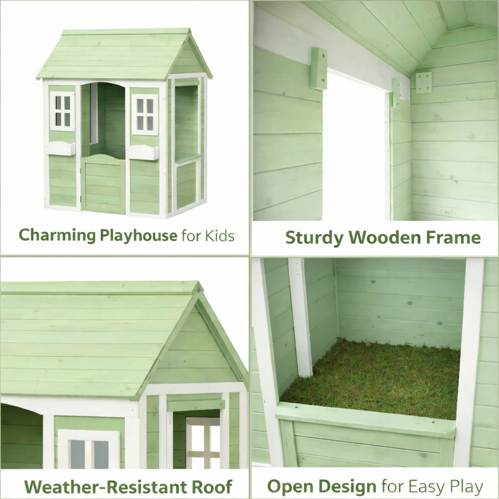 Детска дървена къща за игра Ginger Home, зелено и бяло