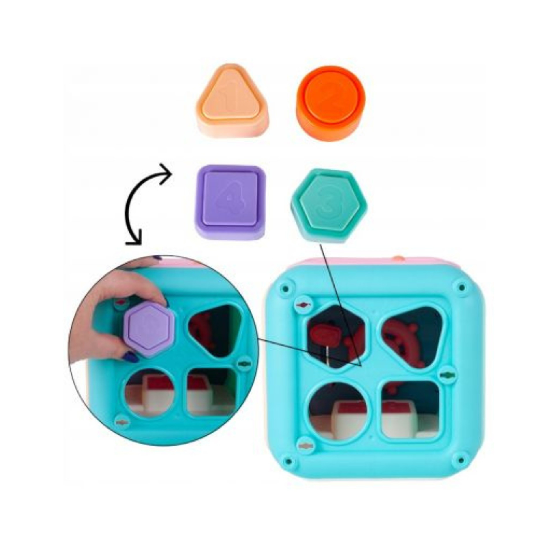 Стимулира координацията око-ръка, насърчава разпознаването на форми и логическото мислене, като същевременно предлага разнообразна и развиваща игра за усвояване на нови умения всеки ден;