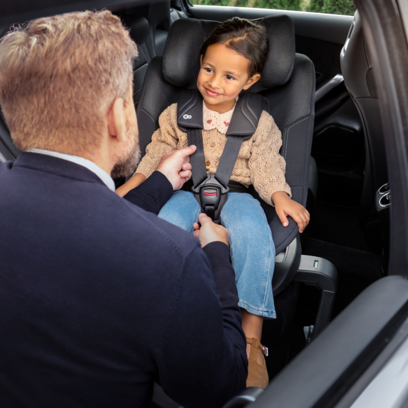 Функцията EASY SPIN на 360° позволява лесно да завъртате седалката около собствената ѝ ос, така че можете да закопчаете детето си без усилие;