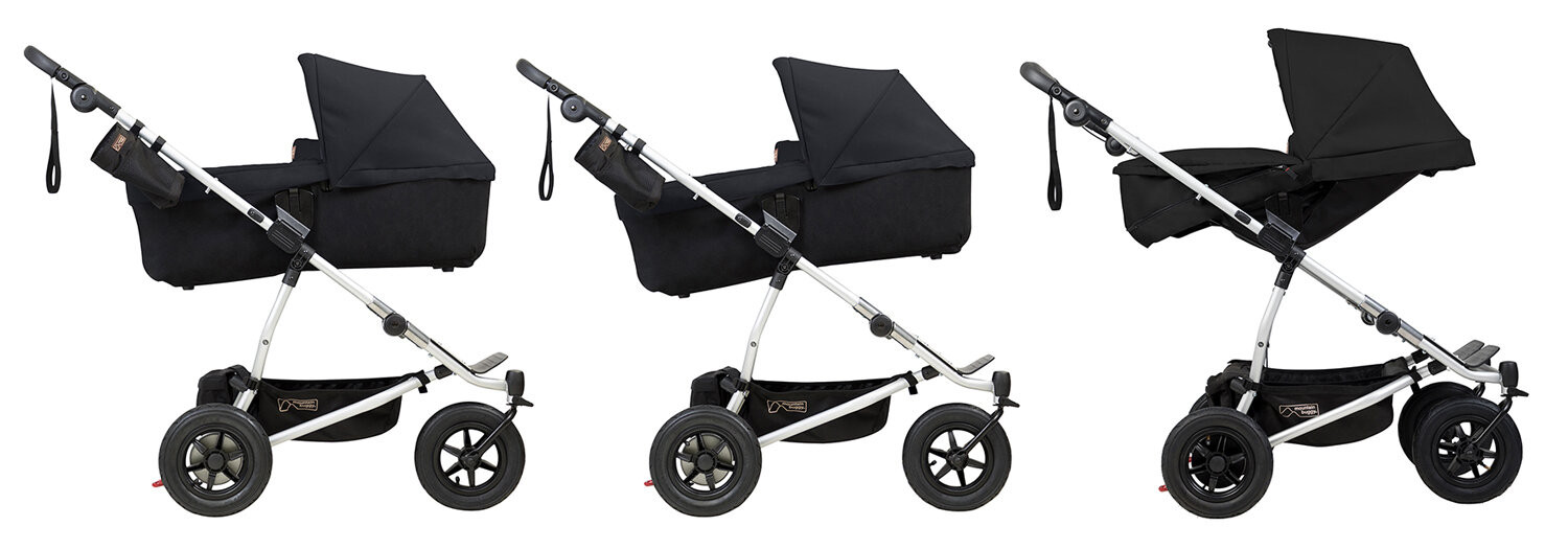 Кошът за новородено Plus е съвместим с количка за близнаци Mountain Buggy Duet;
