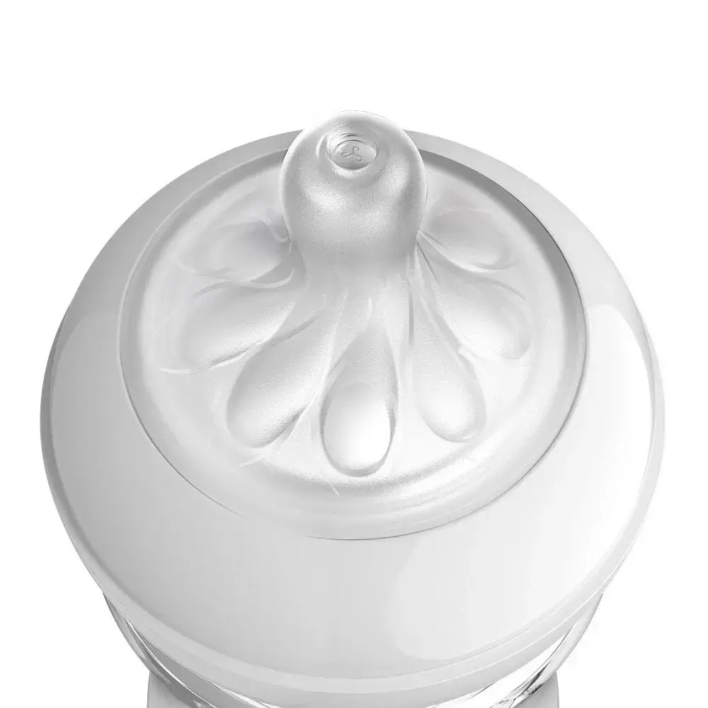 Естествено засукване - широко, меко и гъвкаво зърно е проектирано да имитира формата и усещането на майчината гърда, като помага на бебето да суче и да се храни удобно;