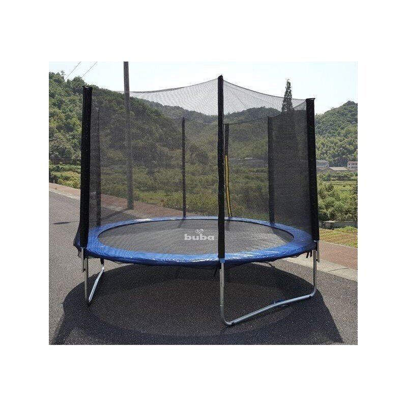 Материал: - Неръждаеми крака и тръби на рамката от галванизирана стомана - Подложката за скачане е произведена от устойчив полипропилен и въглеродни влакна и UV сащита срещу атмосферни влияния - Покривало за пружините, изработено от PVC+PE материал с много добра издръжливост на слъчеви лъчи / издържа до 10 пъти повече на атмосферни влияния от обикновените покривала/