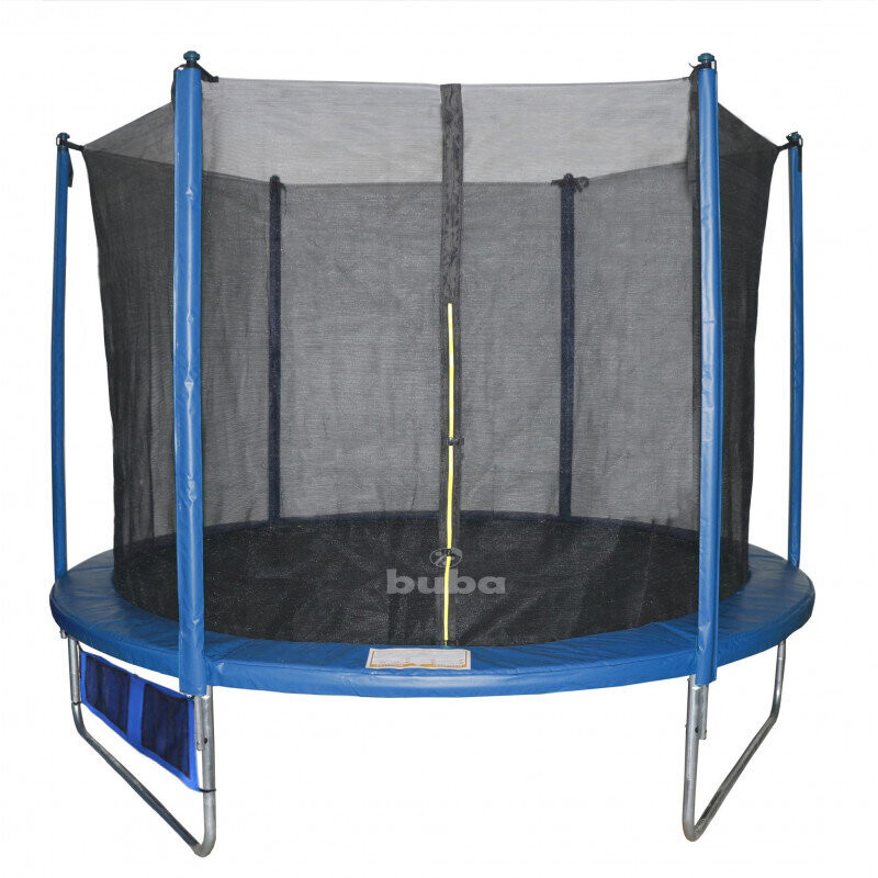 Материал: - Неръждаеми крака и тръби на рамката от галванизирана стомана - Подложката за скачане е произведена от устойчив полипропилен и въглеродни влакна и UV сащита срещу атмосферни влияния - Покривало за пружините, изработено от PVC+PE материал с много добра издръжливост на слъчеви лъчи / издържа до 10 пъти повече на атмосферни влияния от обикновените покривала/