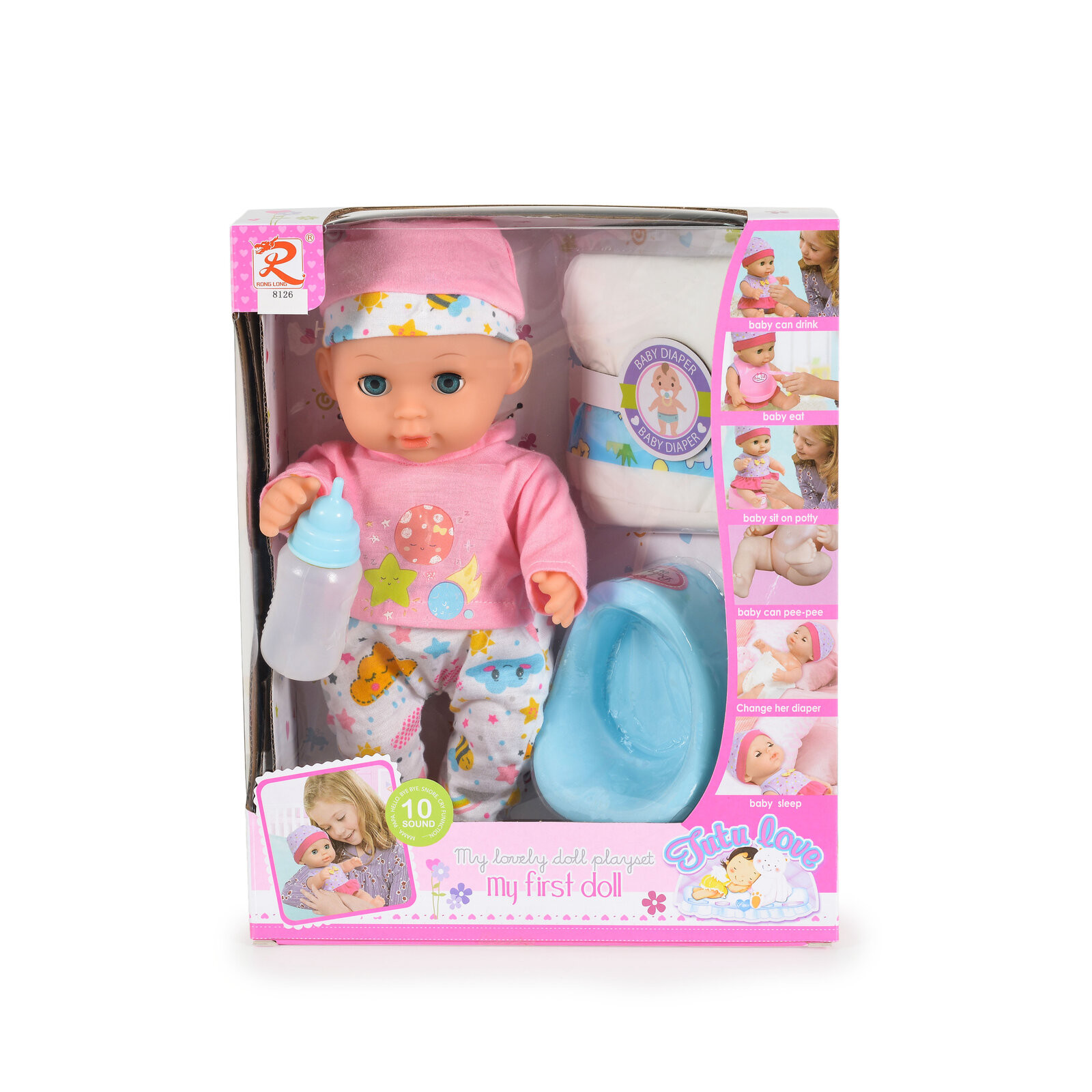 В комплекта са включени: - шише - памперс - гърне ! Включеното шише е играчка и не е подходящо за бебета или деца