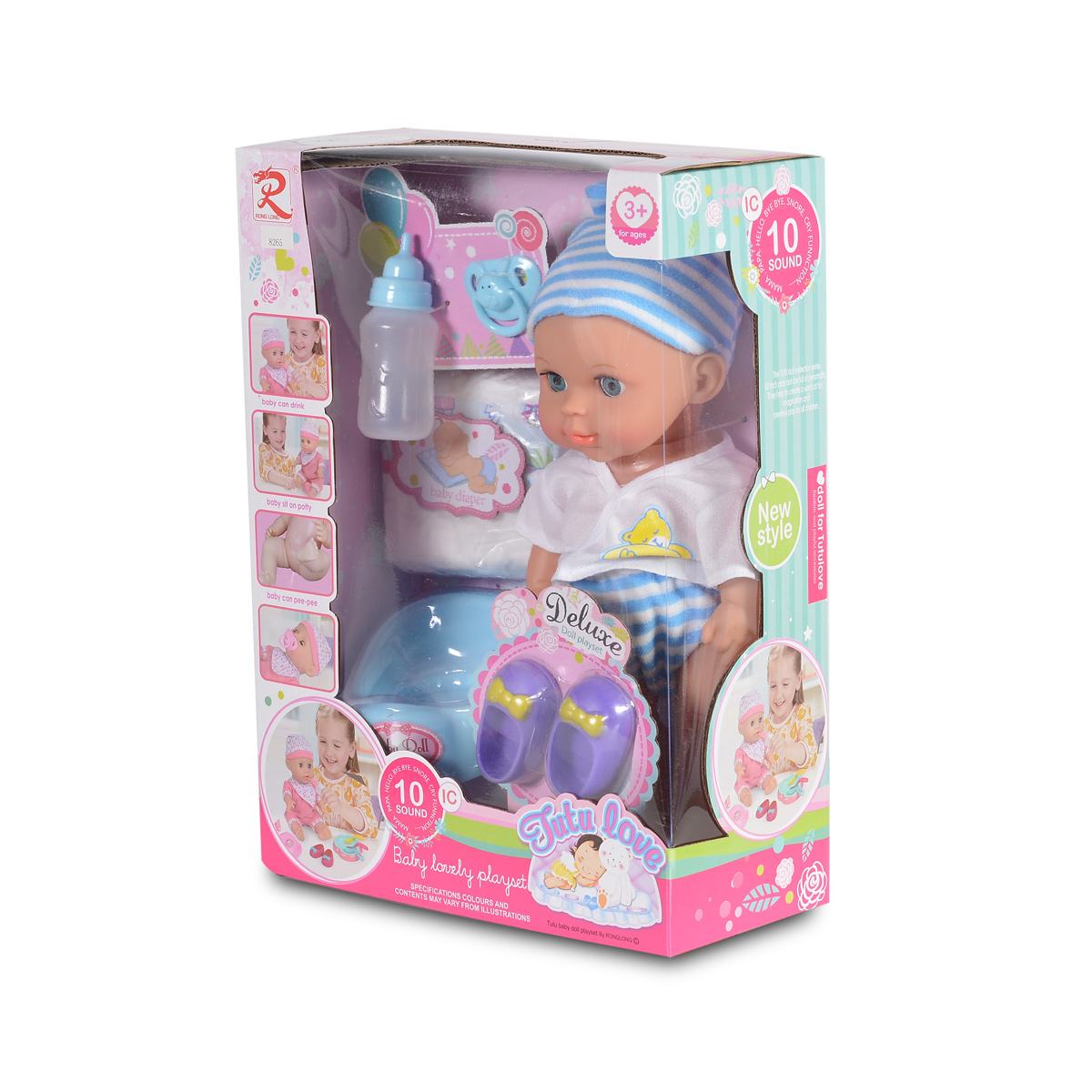 В комплекта са включени: - шише - памперс - гърне - аксесоари за бебе ! Включеното шише е играчка и не е подходящо за бебета или деца
