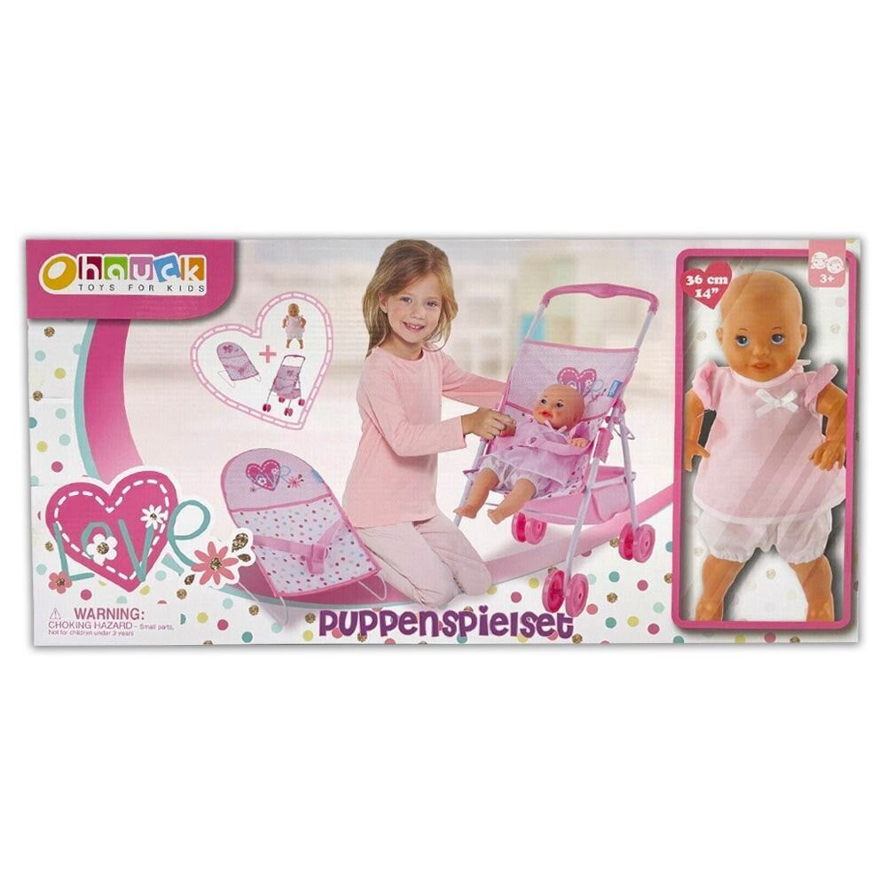 Бебешки и детски магазин "СЛАДУРЧЕТА" и марката "Hauck" представят на Вашето внимание игрален комплект количка, шезлонг и кукла със следните характеристики: