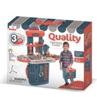 Комплектът се състои от отвертка, гаечен ключ, болтове, гайки, трион, чук, летви . Работната маса се сгъва в удобен компактен куфар;