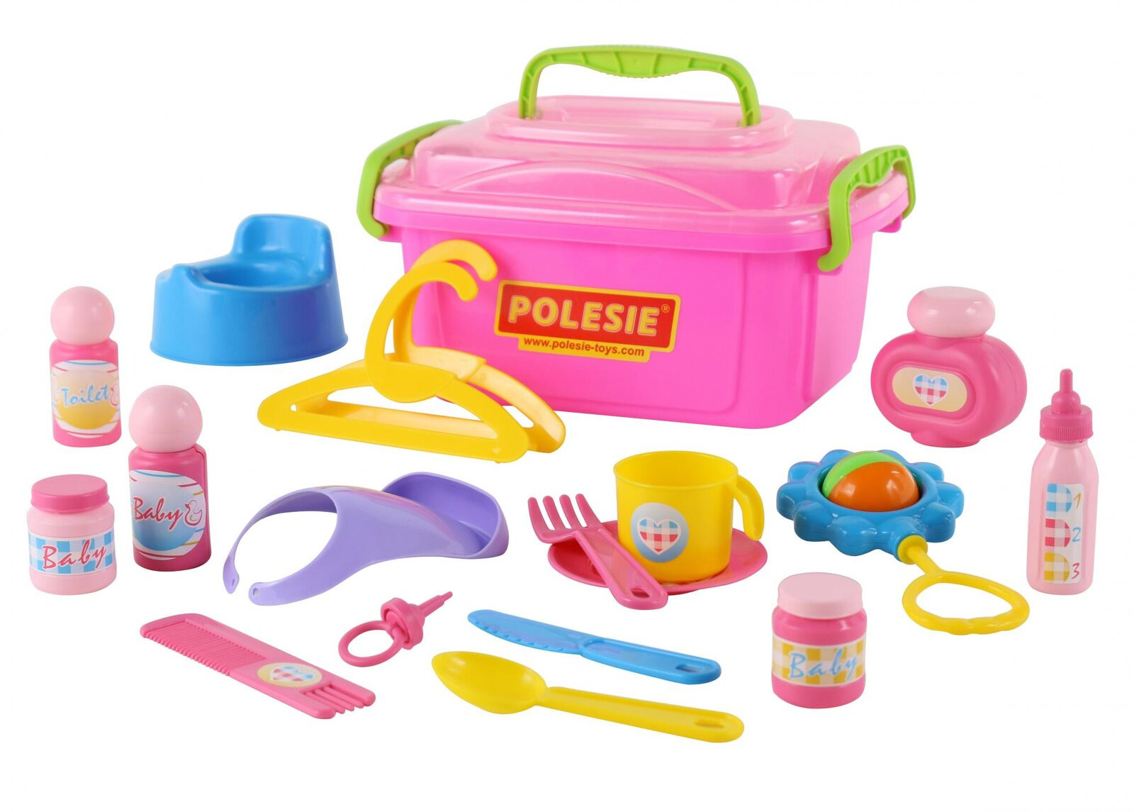 Съдържа бебешки аксесоари и принадлежности, с които малката бавачка да се грижи за своето бебе- кукла