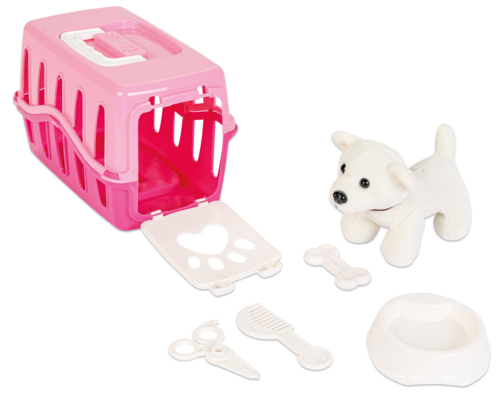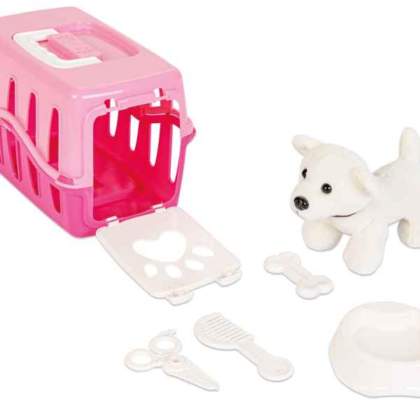 • Комплектът включва:- 1 бр. преносима клетка- 1 бр. плюшена играчка- 1 бр. купичка за хранене- 1 бр. ножица- 1 бр. гребен- 1 бр. кучешки кокал