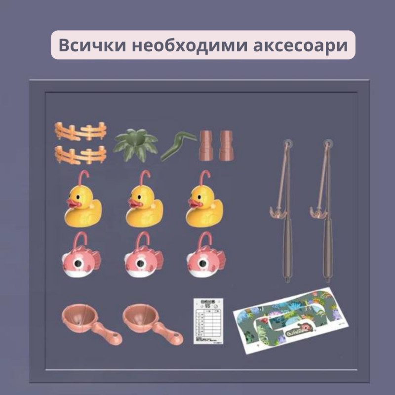 Езеро и аксесоари– растения, стикери за езерото, патета и рибки, 2 въдици и др;