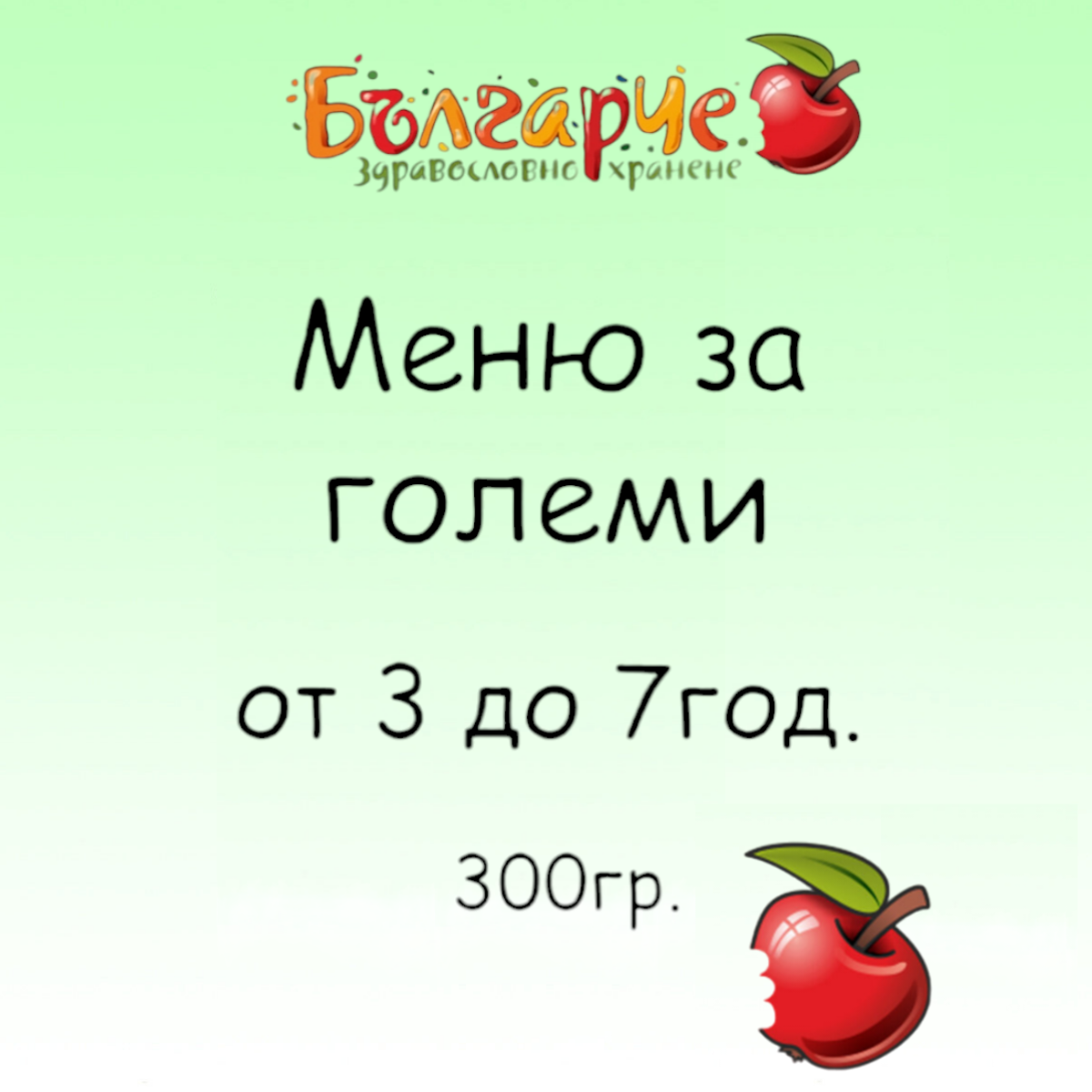 Състои се от: супа, основно и десерт - всяко по 300гр.