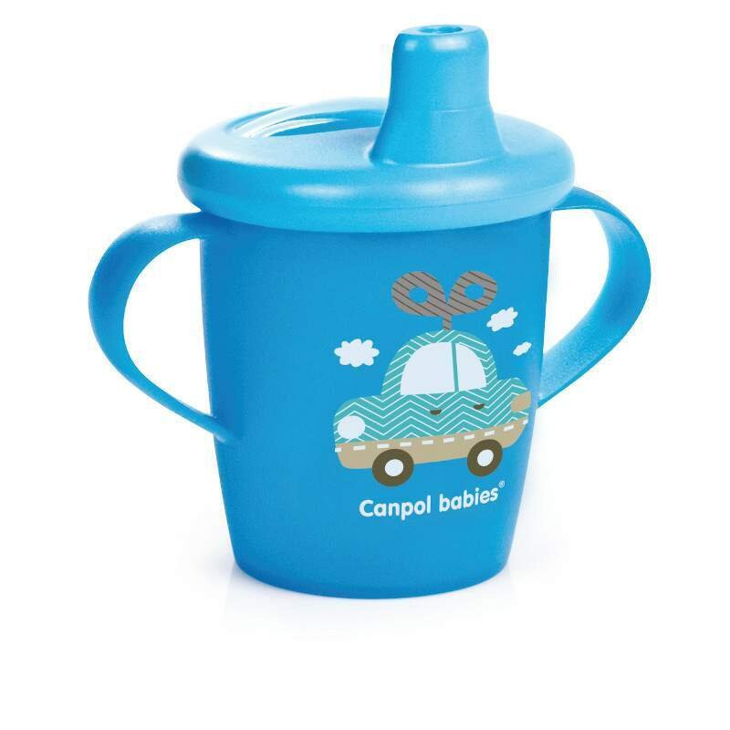 Нетечаща чаша с дръжки и твърд накрайник Canpol TOYS 250 мл, синя