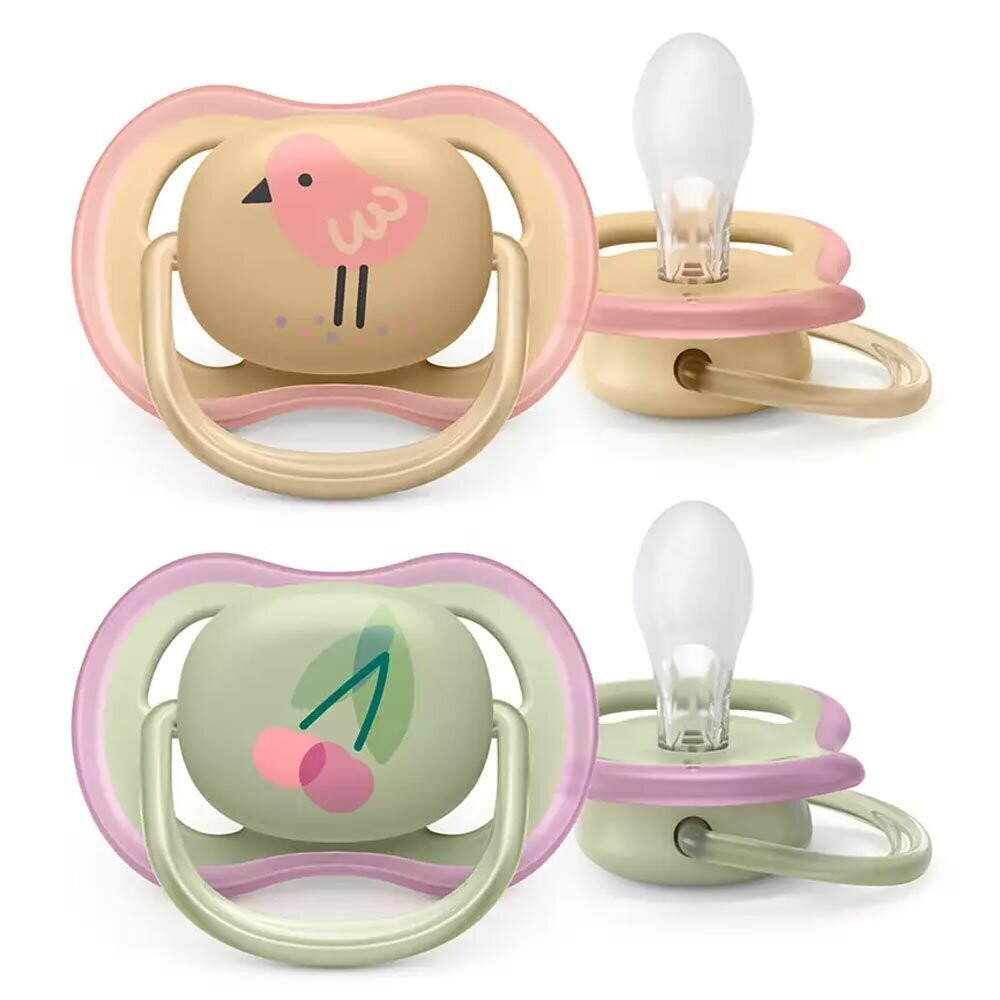Ортодонтични залъгалки Philips AVENT Ultra Air 0-6м- Череши и Птица в кутия за стерилизиране, 2 бр.