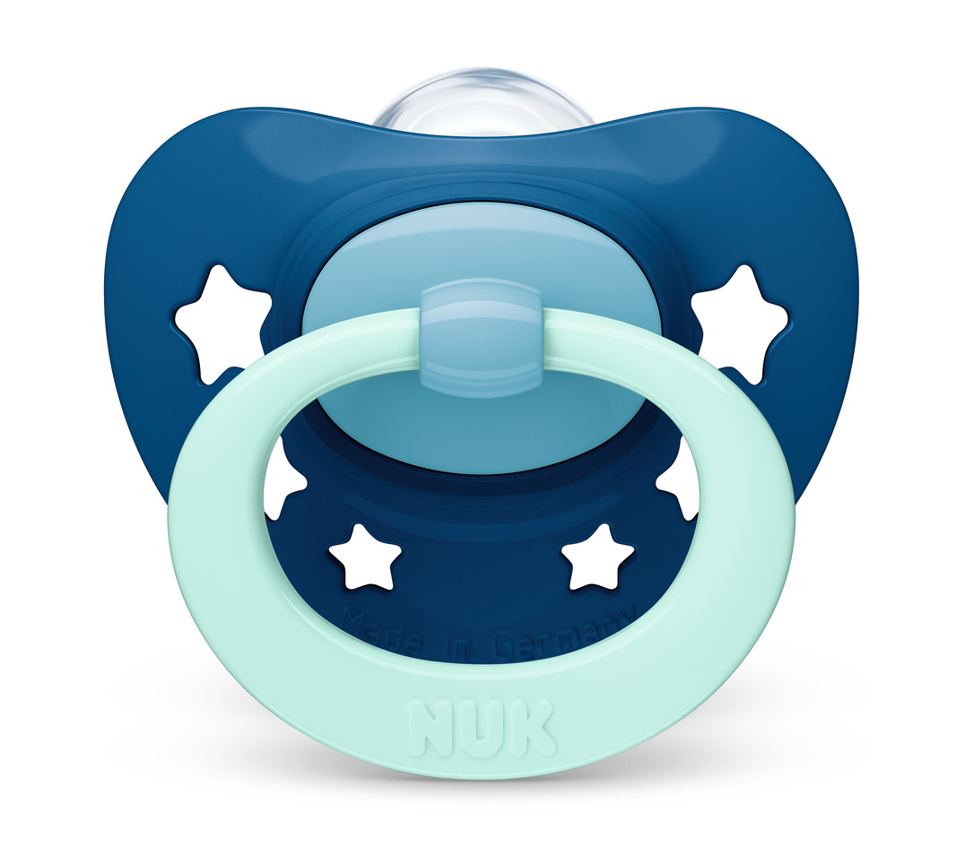 Въздушна система NUK Air System, благодарение на която въздухът напуска силиконовата част на залъгалката, така тя остава мека и гъвкава