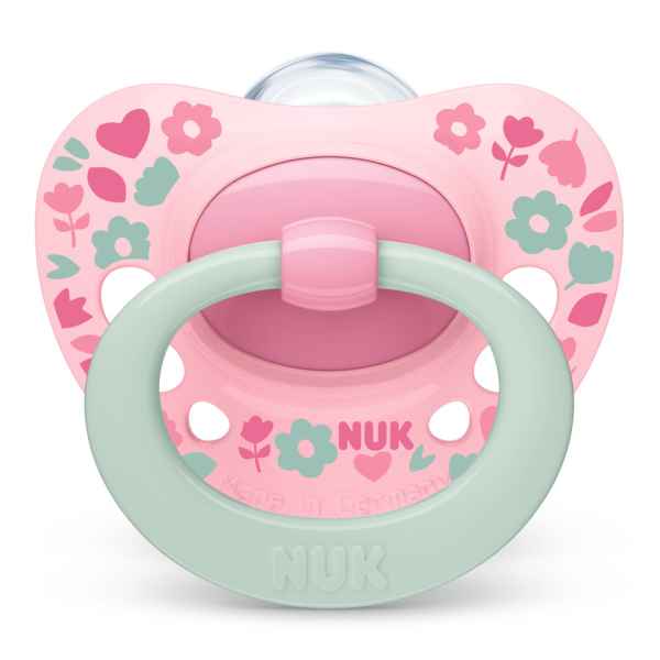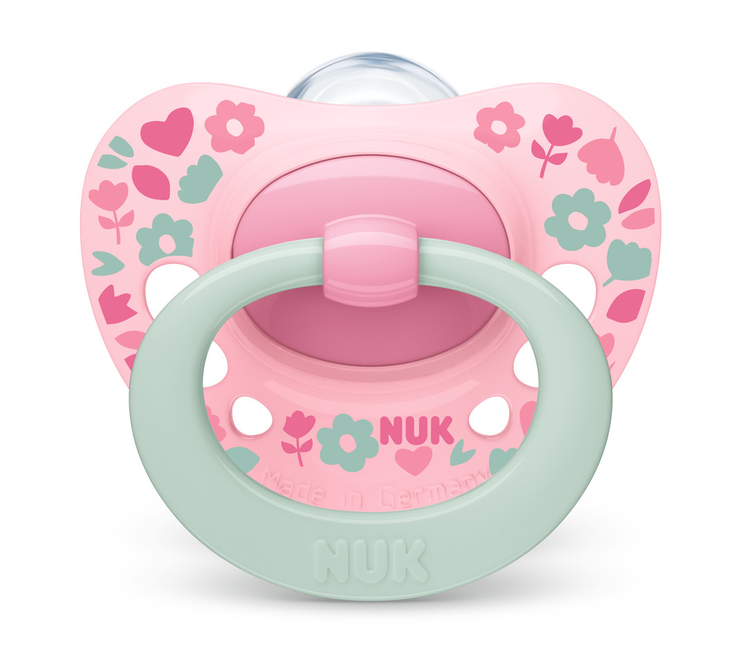 Въздушна система NUK Air System, благодарение на която въздухът напуска силиконовата част на залъгалката, така тя остава мека и гъвкава