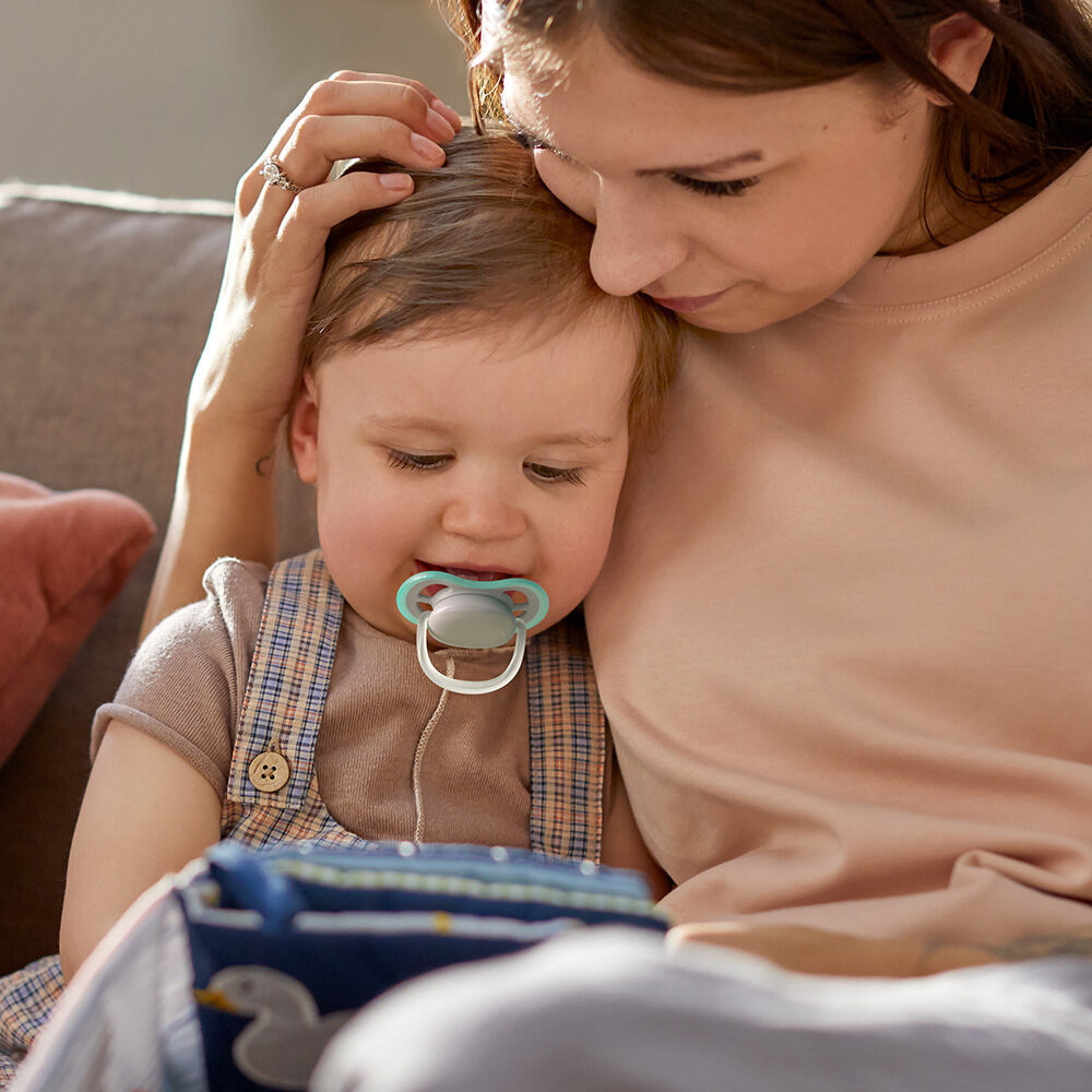 • Щит с 4 големи въздушни отвора на залъгалките Ultra Air за допълнителен въздушен поток и намаляване раздразнението около устата на деликатната бебешка кожа