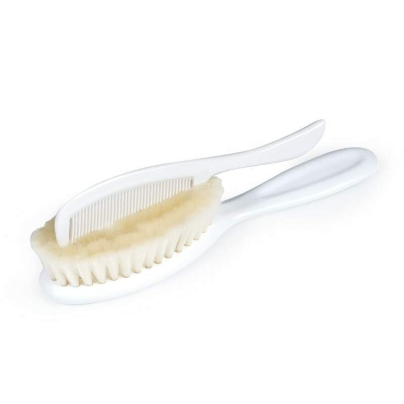 Комплектът включва: - гребен със заоблени зъби - мека четка с найлонов косъм