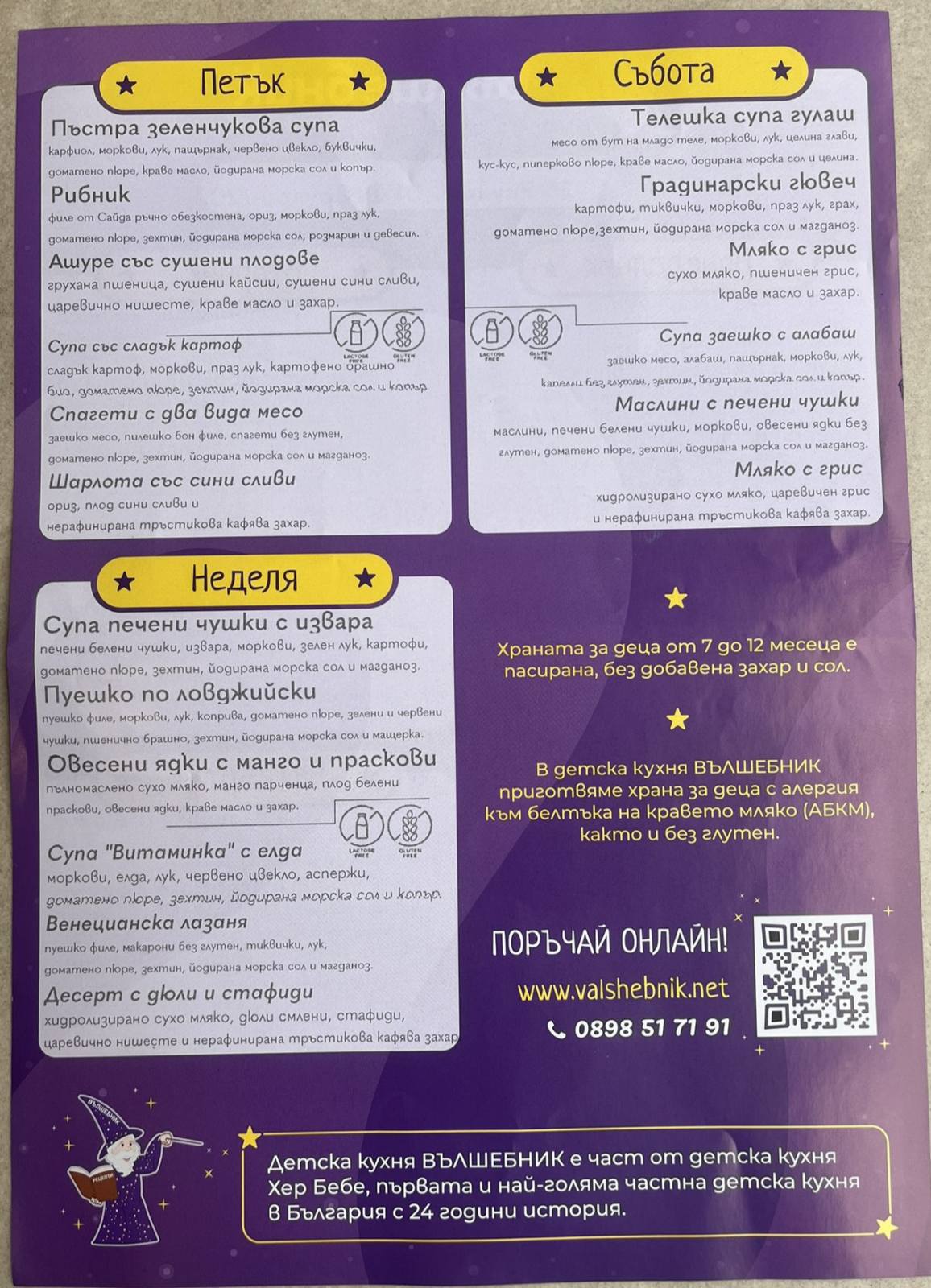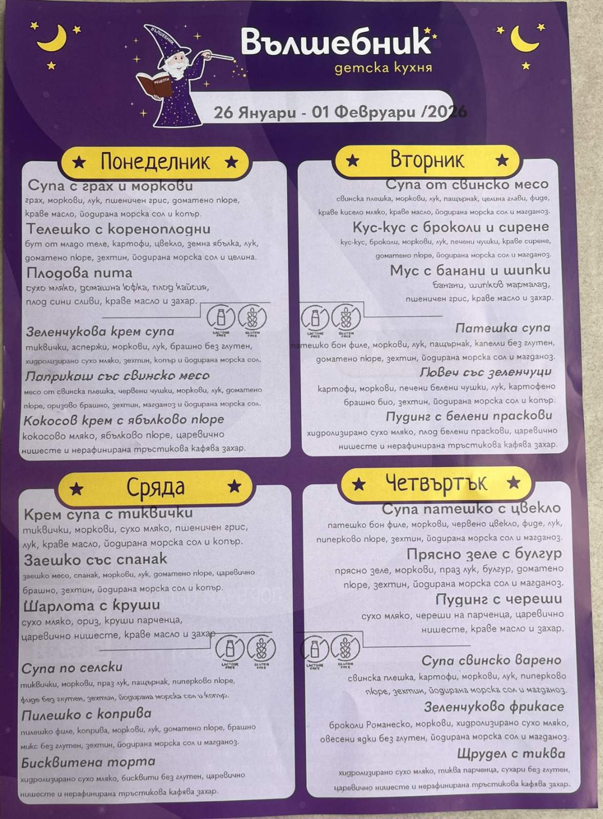 Менютата са съобразени изцяло с хранителния режим на децата Ви и техните калорийни нужди