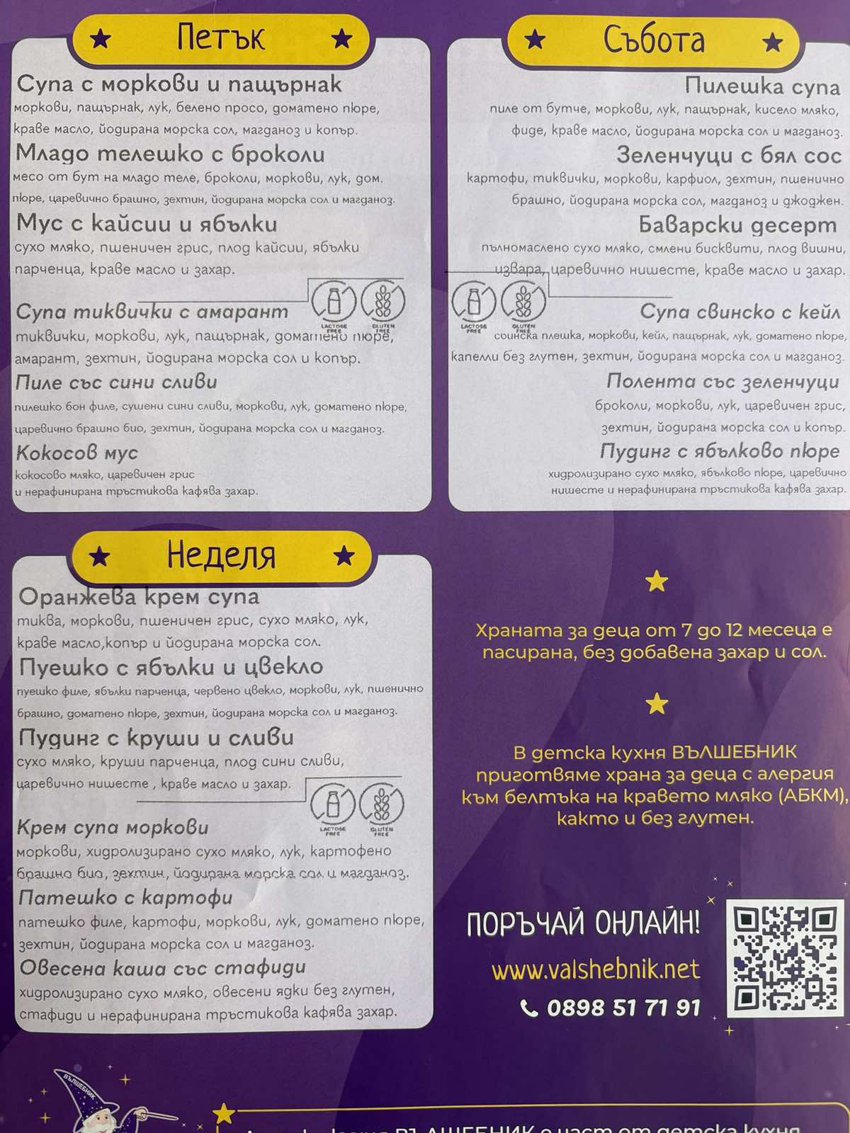 Менютата са съобразени изцяло с хранителния режим на децата Ви и техните калорийни нужди.