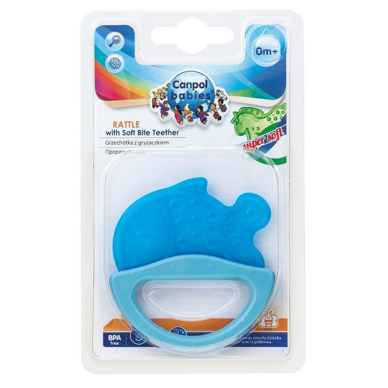 Силиконова дрънкалка с мека чесалка 0м+ Canpol, синя рибка