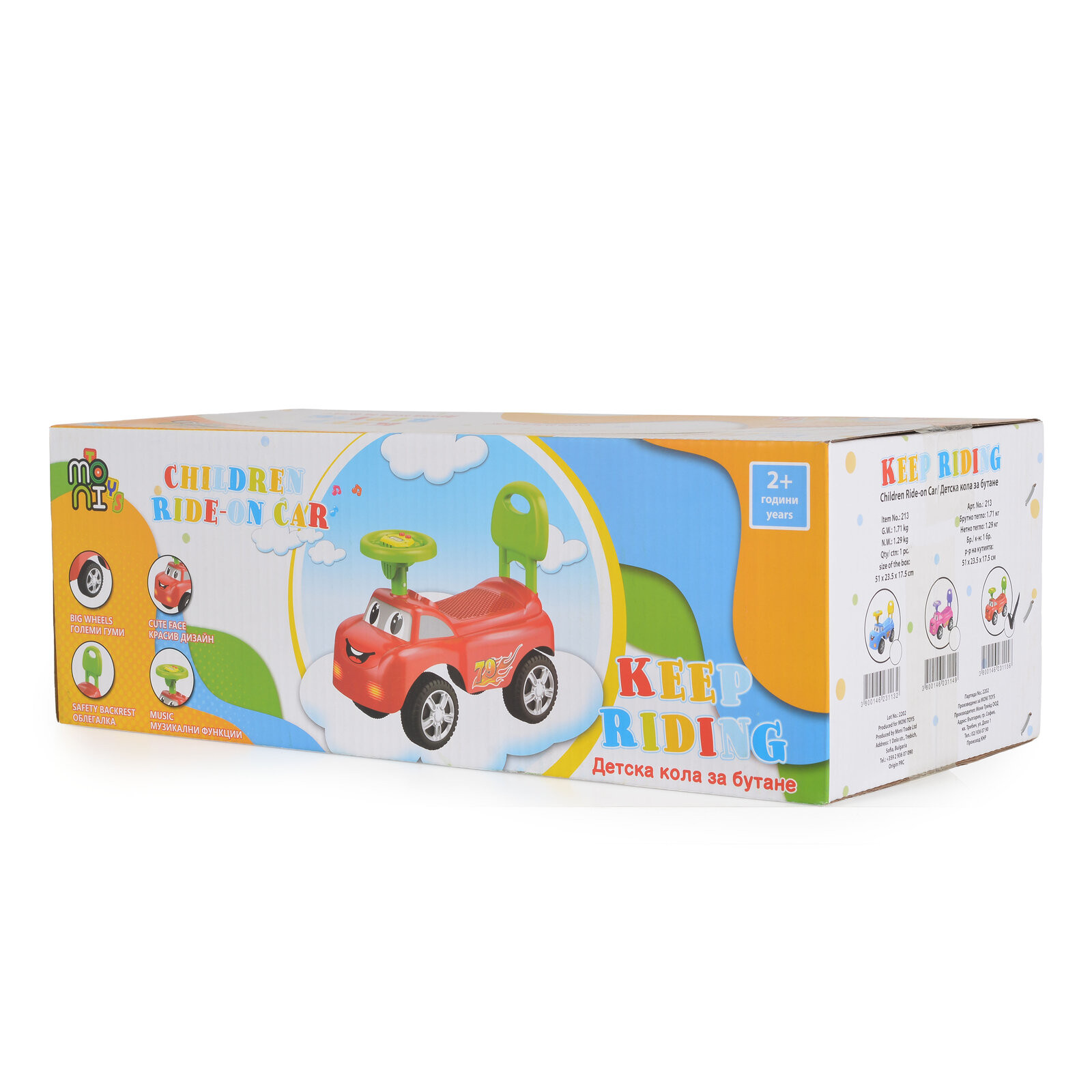 Бебешки и детски магазин "СЛАДУРЧЕТА" и марката "Moni" представят на Вашето внимание детска кола за бутане със следните характеристики: