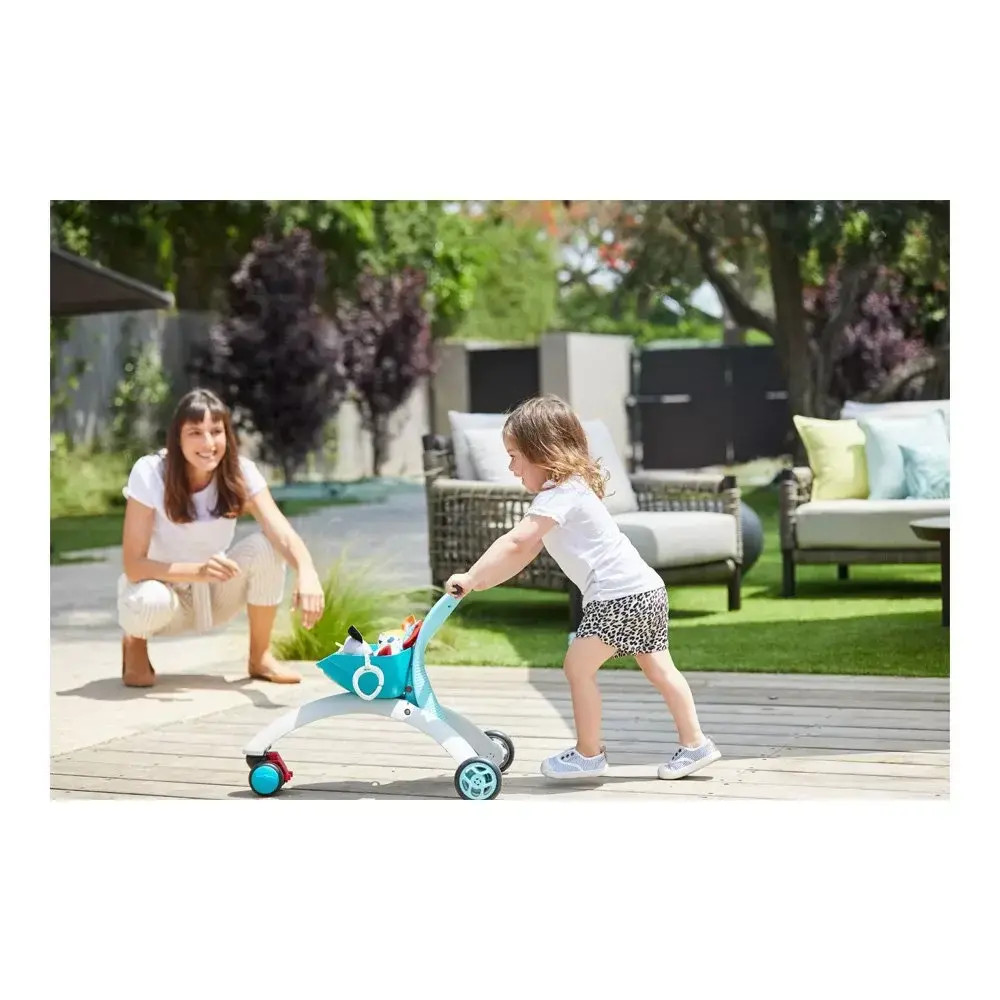 - 10 месеца + Разходка зад играчката - След като мъничето се почувства по-уверено, започват да търси нови начини за изследване на света! То стои стабилно зад мобилната играчка, държи се за дръжката и благодарение на контрола на скоростта безопасно експериментира със своите първи малки стъпки;