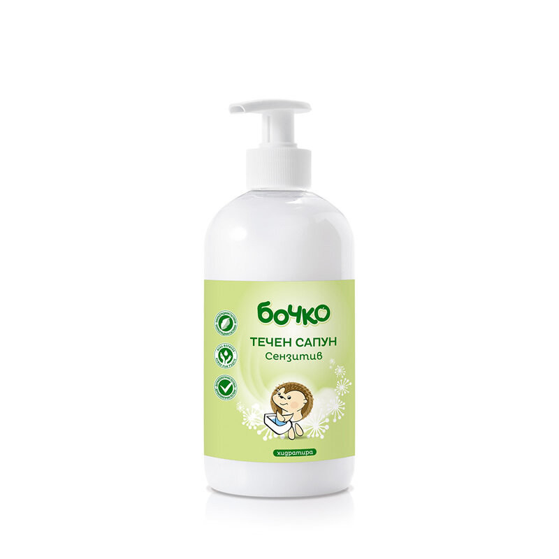 Биоразградими активни съставки, течният сапун Бочко е подходящ за често измиване на чувствителна и склонна към алергии кожа