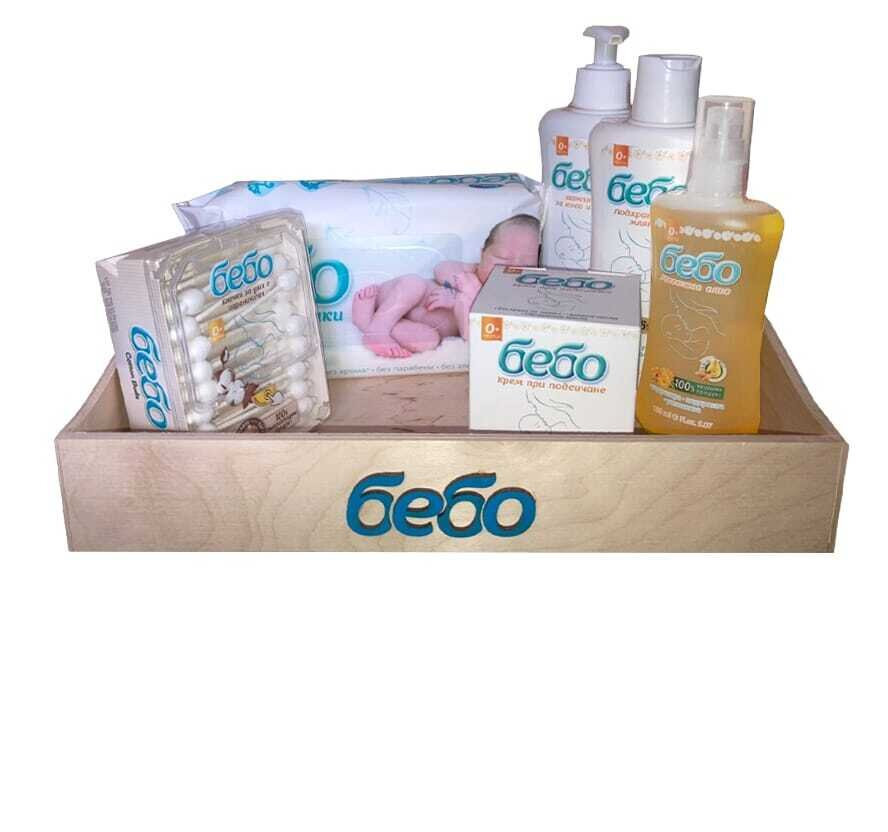 Комлектът включва: - Шампоан за коса и тяло Бебо 300 мл; - Подхранващо мляко Бебо 300 мл; - Масажно олио Бебо 150 мл; - Крем при подсичане Бебо 40 мл; - Клечки за уши Бебо с ограничител - Биоразградими 60 бр.; - Влажни кърпички Бебо 64 бр. без аромат; - Дървен панер;