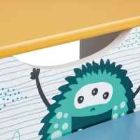 Проектирано е с практично място за съхранение на любими предмети, играчки и книжки;