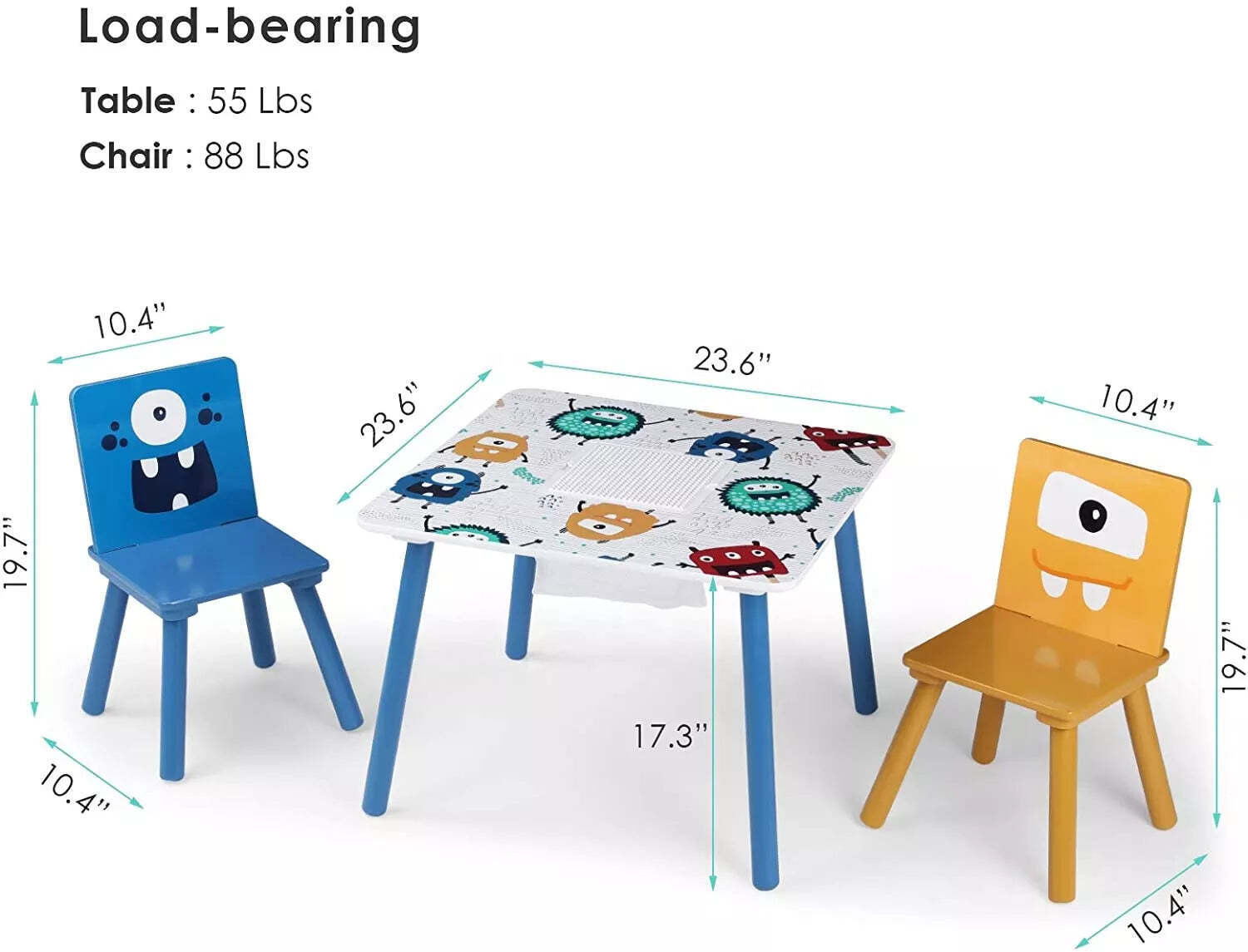 Максимално натоварване на масата: 20 кг; Максимално натоварване на стола 40 кг;