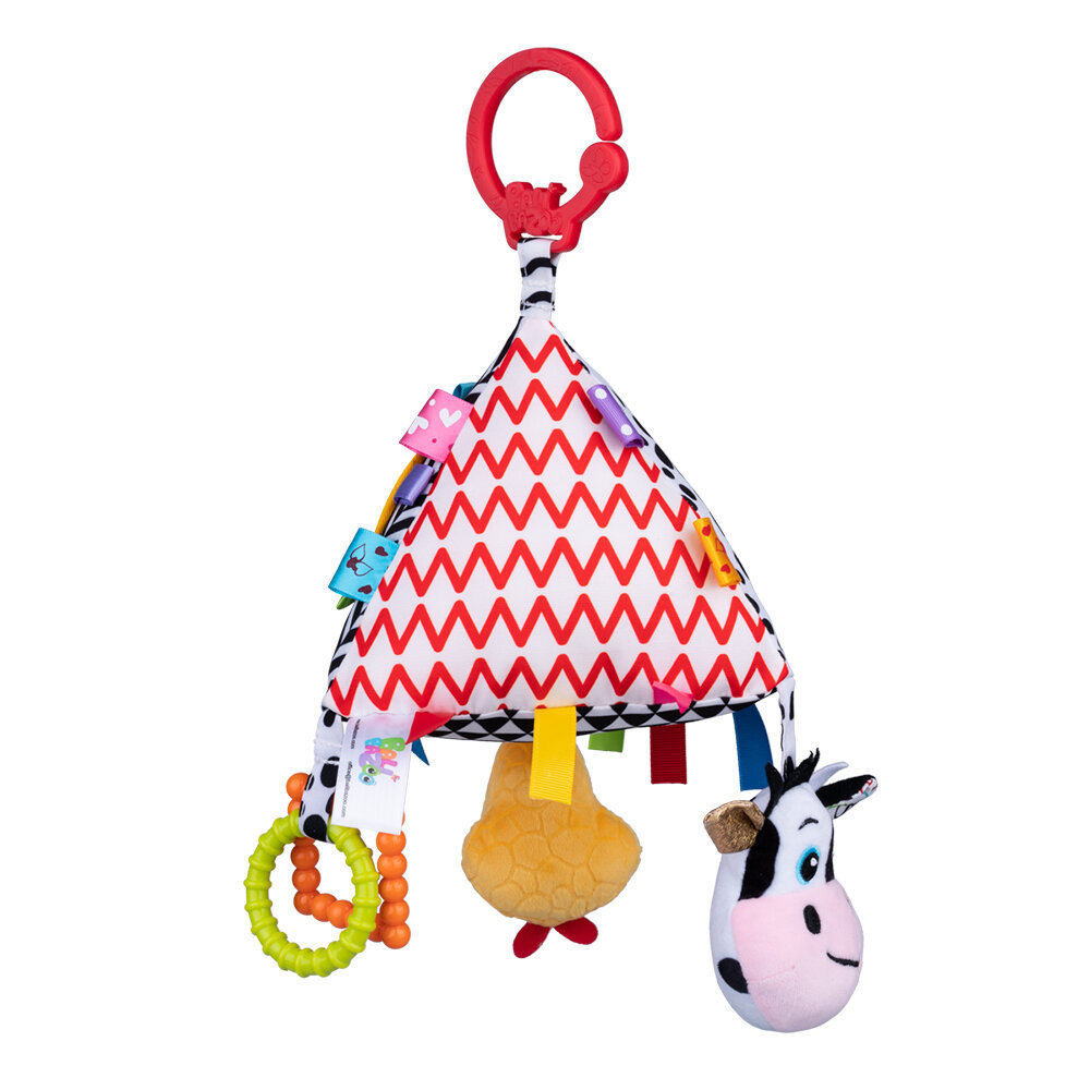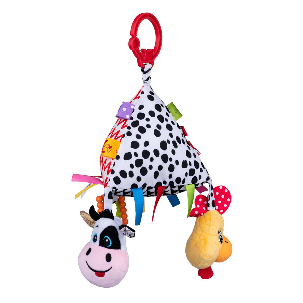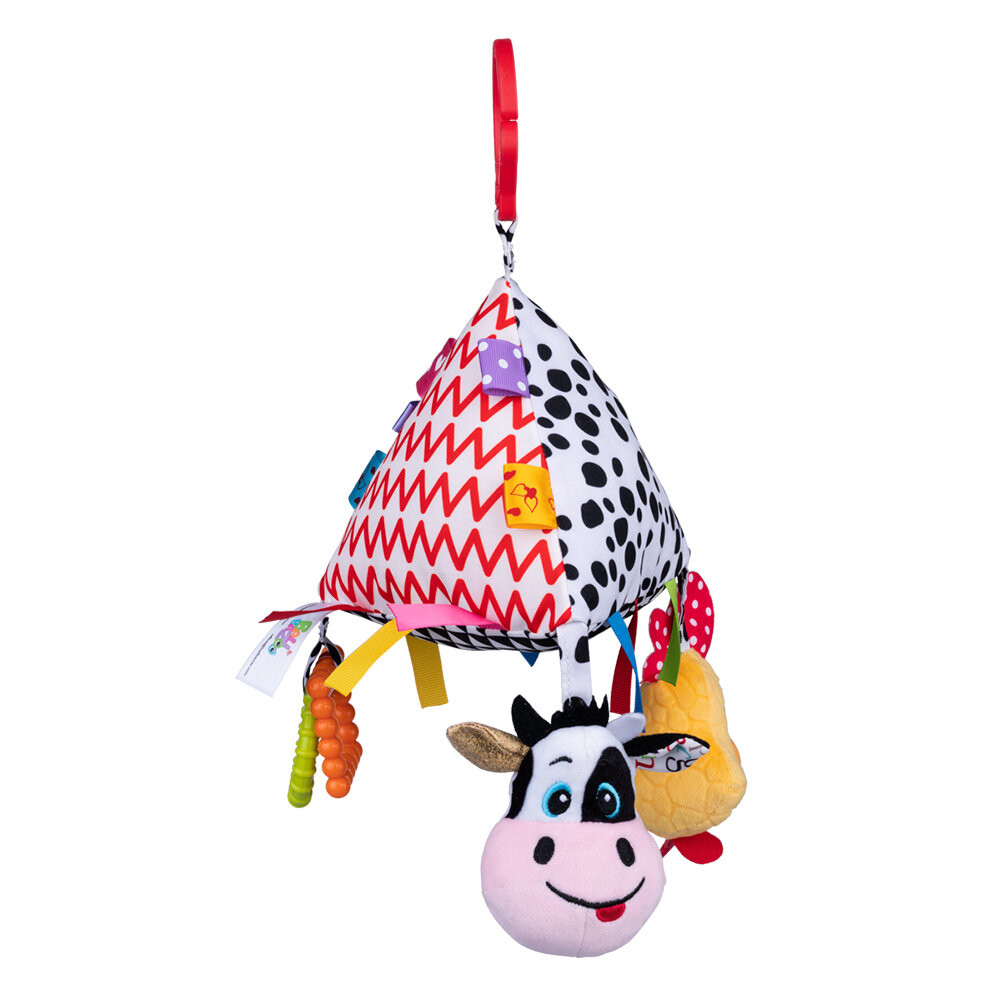 • Пластмасови рингове, различни материи, разноцветни етикети, писукащ елемент, дрънкалка, безопасно огледало